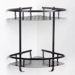 Merkloos Doucherek 2 Laags – Douche Rek Zwart Hangend – Incl 2 Haken Badkamer Accessoires