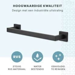 Handdoekrek – RVS – Badkameraccessoires – Keukenaccessoires – Mat Zwart – 40 Cm
