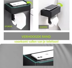 Design Toiletrolhouder – WC Rolhouder – RVS Mat Zwart – Incl. Schroeven