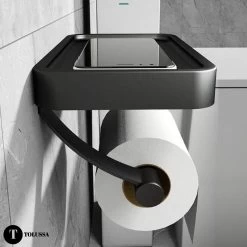 Wc Rol Houder Zwart – Toiletrolhouder – Industrieel – Hangende Wc Rolhouder – RVS – Mat Zwart