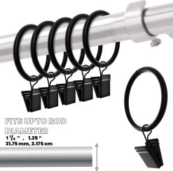 BOTC Gordijnringen Met Klem – 38 MM – Zwarte – Sets Van 20 Stucks