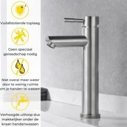 Merkloos Saqu Eurotrend Fonteinkraan – Hoog Model – Toiletkraan – Koudwaterkraan – Mat Zwart