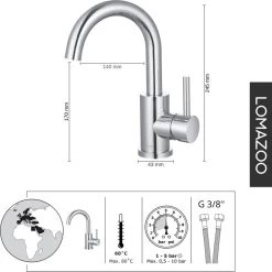LOMAZOO Wastafelkraan Zwart Cardano – Zwarte Kraan – Badkamerkraan – Wastafel Mengkraan – Hoog