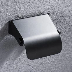 Toiletrolhouder – Wc Rolhouder – Zwart – RVS – Met Klep – Schroeven