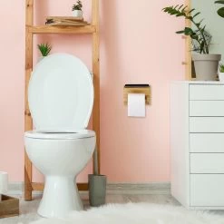 Relaxdays Toiletrolhouder Bamboe – Wc Rolhouder Zonder Boren – Closetrolhouder Muur Modern