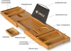 SWILIX ® Badplank – Uitschuifbaar – Voor In Bad – 71 Tot 108 Cm – Met Houder – Hout