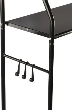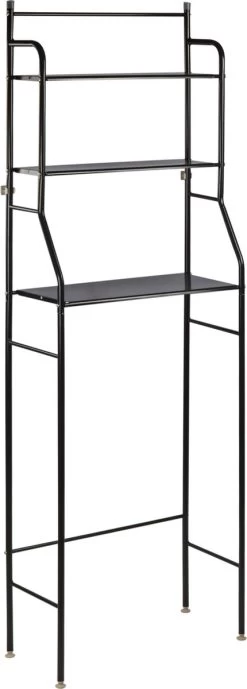 Op zoek naar een luxe stellingkast voor boven je wasmachine of toilet? Dit breed inzetbare, zwarte opbergrek is gemaakt van een metalen frame en beschikt naast een luxe design ook over een goede kwaliteit. Het opbergrek is stabiel en licht, je kunt er wasmiddelen, handdoeken of iets dergelijks in opbergen. Boren en gereedschap is ook niet nodig, monteren is erg makkelijk en snel. Met 3 laden en een ophangrek heeft u genoeg ruimte om al uw spullen netjes te sorteren. Er is goed nagedacht over het ontwerp, het past mooi boven ieder toilet of wasmachine.