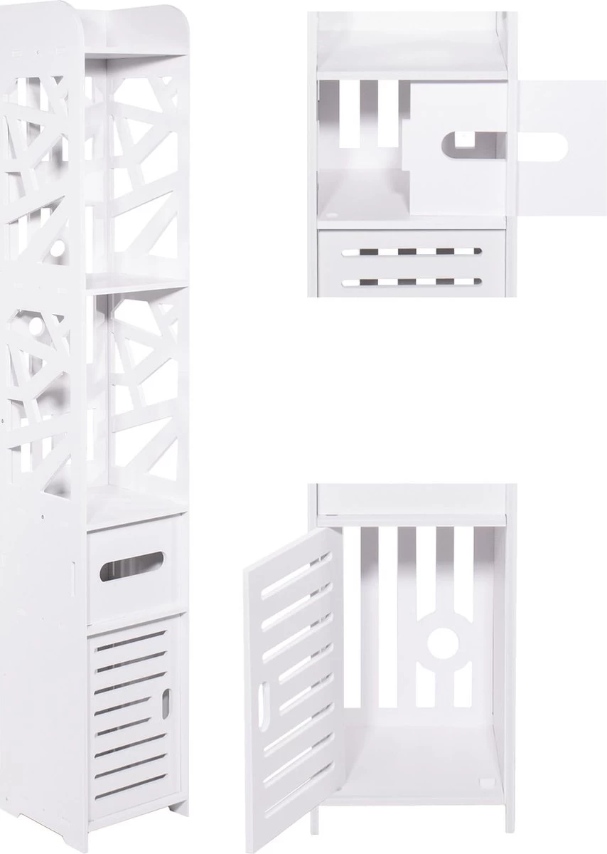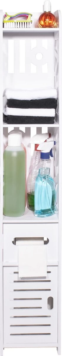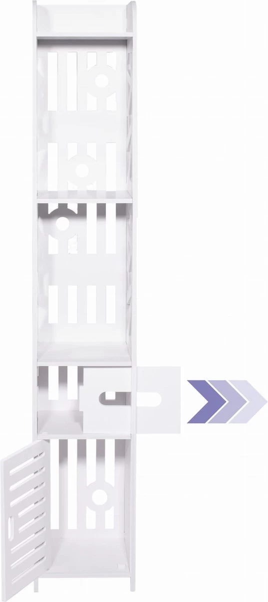 Een sensationele semi-open kast, perfect voor de badkamer, wasruimte, hal, bijkeuken en keuken. De kast is ontworpen om het gebruik van smalle ruimtes te maximaliseren. Hierdoor winnen we extra ruimte en het helpt ons ook om het huis op orde te houden.