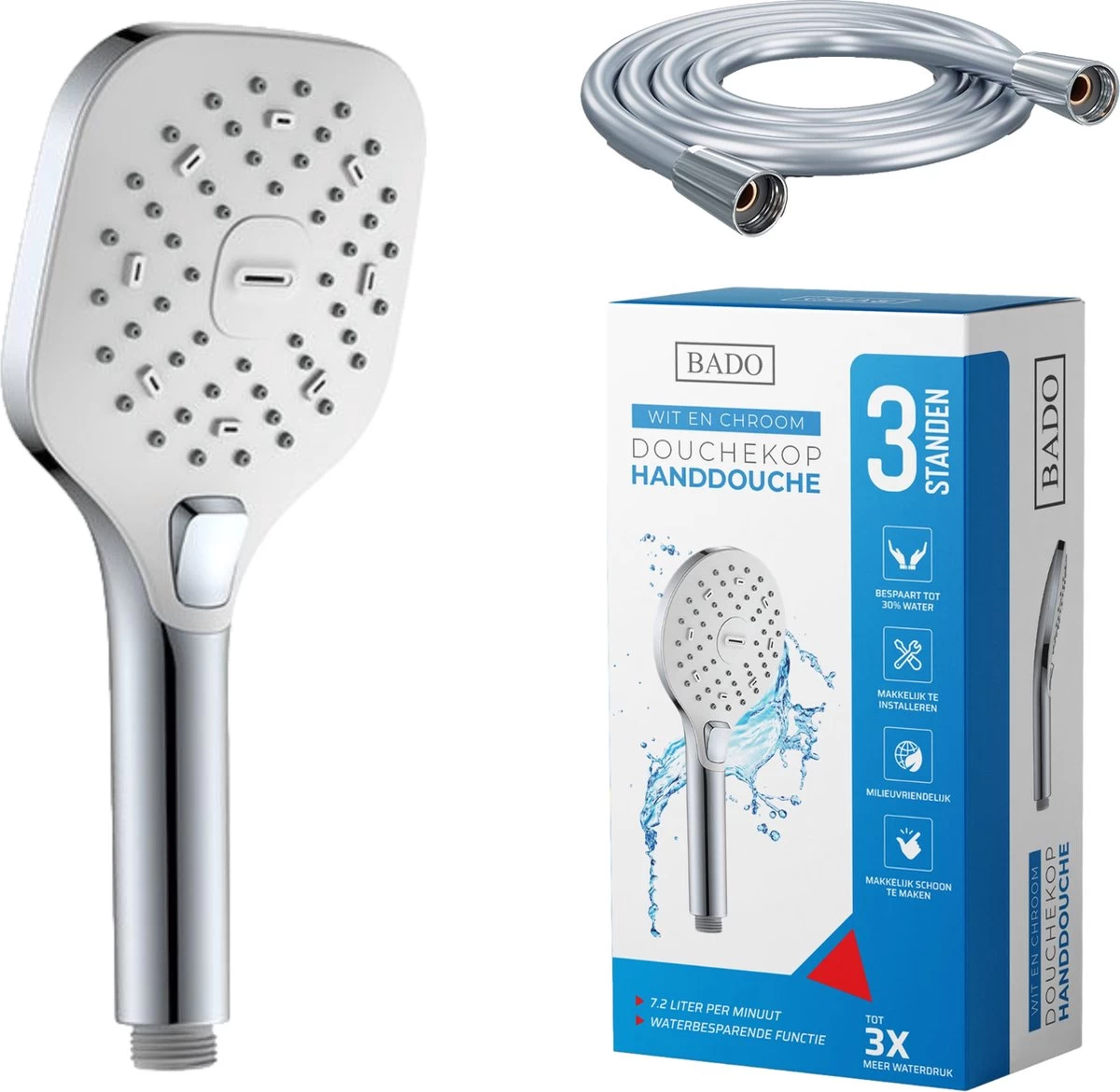 Heeft jouw huidige douchekop ook zo’n zwakke straal? Dan is deze douchekop de ideale oplossing. Deze doucheset beschikt over alles wat je nodig hebt om van je douchebeurt te genieten. Het systeem zorgt voor een goede waterverdeling en een optimaal straalbeeld. Je kunt kiezen tussen drie verschillende standen, zo kies je binnen een mum van tijd jouw favoriete waterstraal uit.