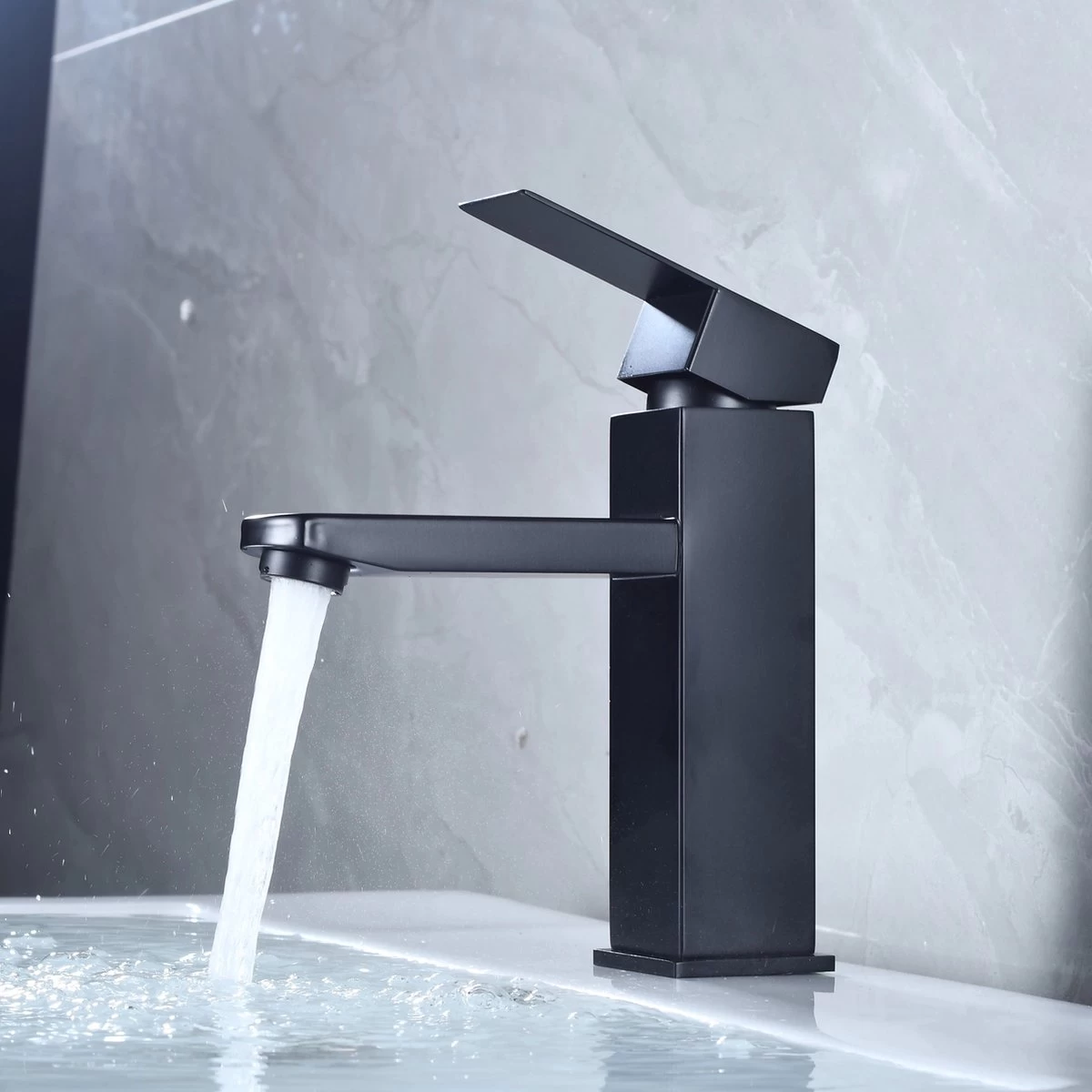 Het design van deze kraan is strak en verfijnd, wat zorgt voor een subtiele toevoeging aan jouw badkamer. De mat zwarte kleur van deze kraan is tegenwoordig hartstikke trendy en past perfect in een moderne of industriële badkamer.