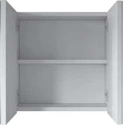 Spiegelkast Leon is een badkamerkast voor in de badkamer uitgevoerd met twee spiegeldeuren en veel bergruimte. De kast is gemaakt van hoge kwaliteit spaanplaat en vanwege zijn strakke afwerking ook makkelijk schoon te maken. De deuren van de kast zijn aan de buitenzijdes uitgevoerd met twee spiegels. De kast heeft aan de binnnekant geen spiegels. De spiegelkast is uitgevoerd in wit
