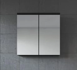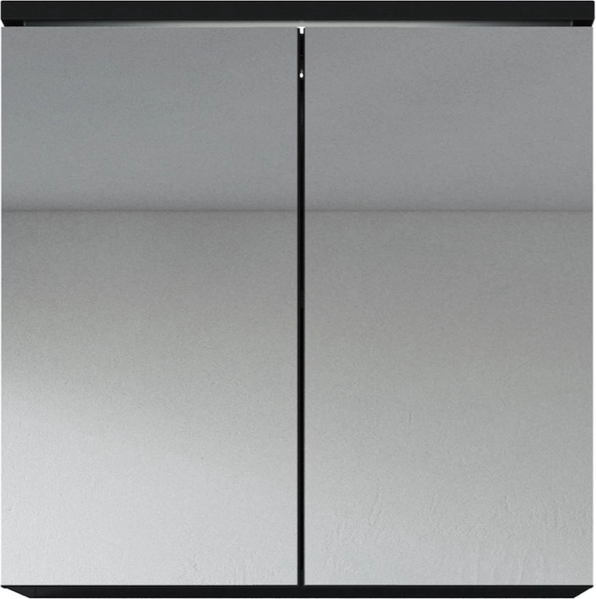 Spiegelkast Toledo is een kast voor in de badkamer uitgevoerd met twee spiegeldeuren en veel bergruimte. De kast is gemaakt van hoge kwaliteit spaanplaat en vanwege zijn strakke afwerking ook makkelijk schoon te maken. De deuren van de kast zijn aan de buitenzijdes uitgevoerd met twee spiegels. De kast heeft aan de binnnekant geen spiegels. De spiegelkast is uitgevoerd in zwart.