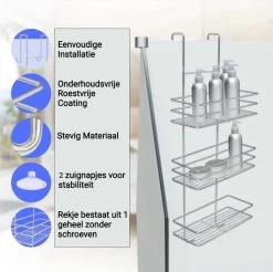 Het Doucherekje bestaat uit 1 geheel, je hoeft geen mandjes vast te schroeven die na verloop van tijd gaan los zitten. Afmetingen (H x B x D): 78 x 25 x 11 cm