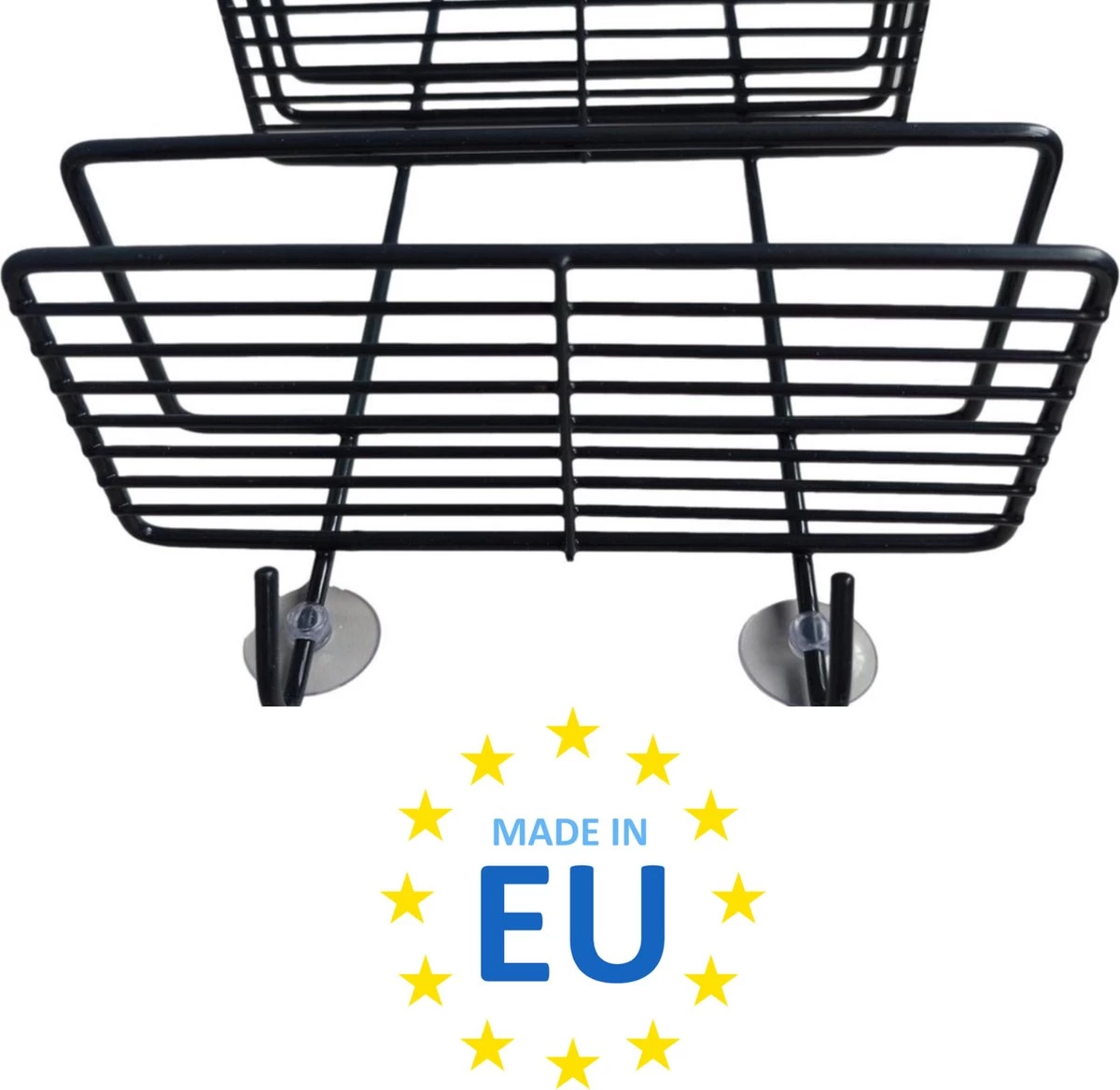 Met dit Zwarte doucherek 2 laags kan je moeiteloos je shampoo flessen, douchegel en of wisser plaatsen in de 2 aanwezige mandjes, en op elk gewenste plek binnen handbereik over je douchecabine hangen.
