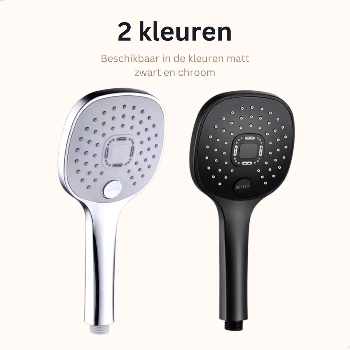 Deze vlakke premium douchekop heeft een modern design, die past in iedere badkamer. Populair is de Zwart kleur die je badkamer een uniek en elegant accent geeft. Deze douchekop staat voor kwaliteit. En dat merk je in alles. De luxe uitstraling, hoogwaardige materialen, een ergonomische greep, de soepele Select Knop die je met één vinger kan bedienen en drie heerlijke sproeistanden.