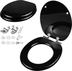 De wc-bril bestaat uit een stabiele houten kern en ook de ingebouwde metalen scharnieren zorgen ervoor dat de toiletbril stevig vastzit. De wc-bril heeft de gebruikelijke O-vorm en past op alle standaardkeramiek.