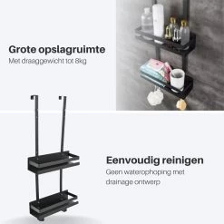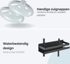 Je dag eindelijk zonder stress beginnen met de handige doucherek. Geen boorgaten in de muur? Het douchrek is namelijk speciaal ontworpen om aan de douchewand te hangen. Het doucherek is geschikt voor iedere douchewand tussen de 0 en 4.5 cm. Het doucherek heeft zuignappen aan de achterkant van het rekje voor extra stevigheid. Het stijlvolle doucherek is in RVS uitgevoerd en heeft een zeer moderne en minimalistisch design.