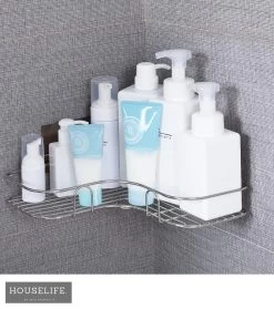 Gemaakt van Roestvrij Staal (RVS) berg je gemakkelijk je shampoo, conditioner en douchegel op in dit doucherek. Met zijn praktische 90º hoek design van dit douchemandje bespaar je ook gemakkelijk ruimte in je douche.
