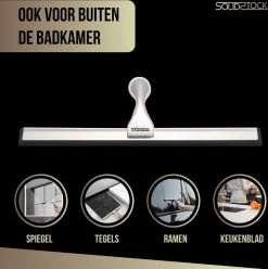 Verdient jouw badkamer ook een luxe uitstraling? Deze hoogwaardige chromen douchewissers van SolidStock geven onmiddellijk een trendy industriële look en is een must voor je badkamer. De trekker heeft een duurzame siliconen strip die nauwkeurig alle waterresten verwijdert van jouw douche, ramen en spiegel, zonder strepen of krassen achter te laten en jouw badkamer weer laat stralen.