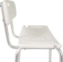 De Dunimed douchekruk met rugleuning is eenvoudig in hoogte verstelbaar van 39 tot 52 cm waardoor deze geschikt is voor bijna iedere lengte.