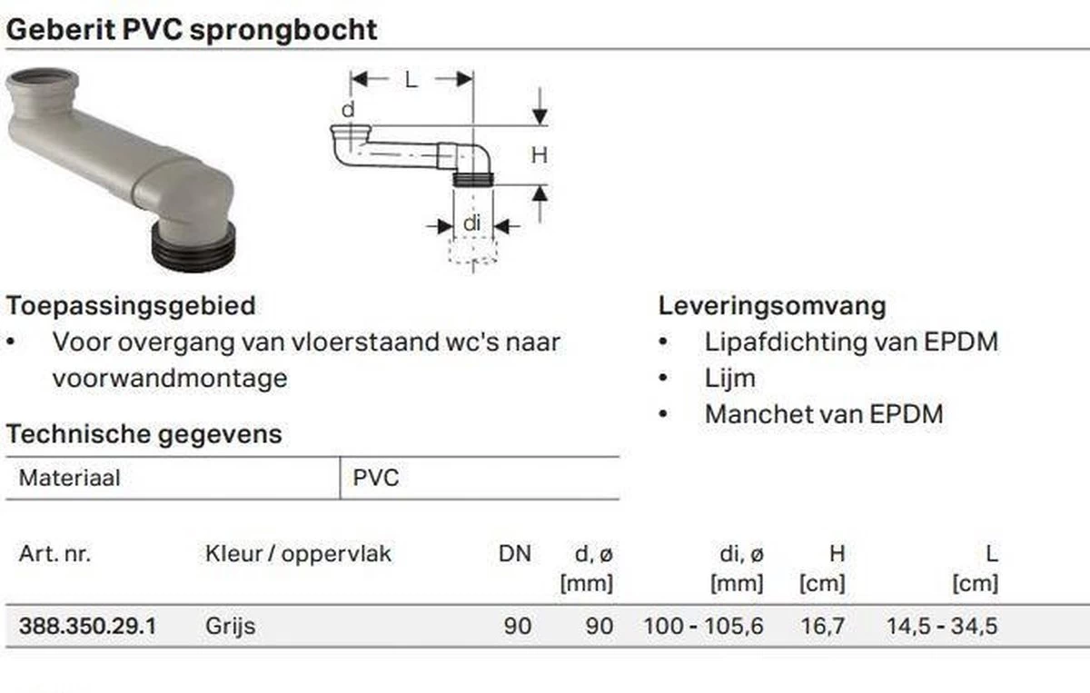 Sprongbocht as=90x110mm.afv.14,5-34,5cm.hoogte 7cm van het merk Geberit.