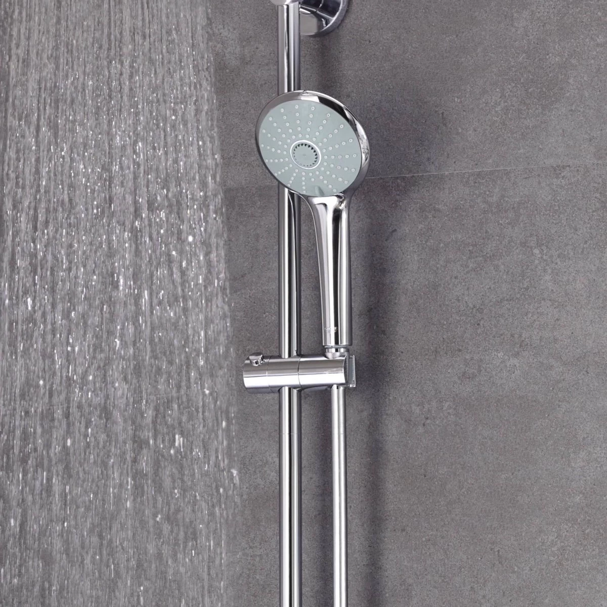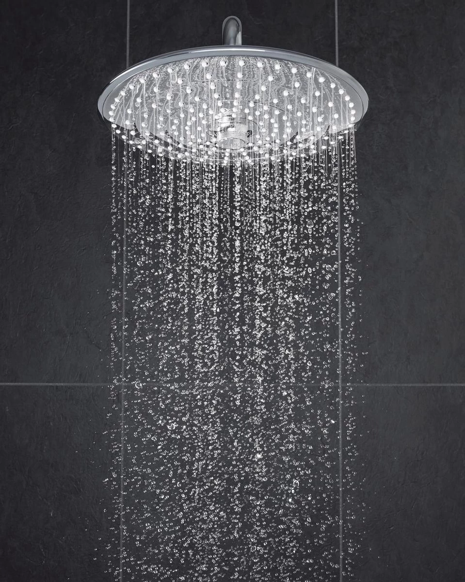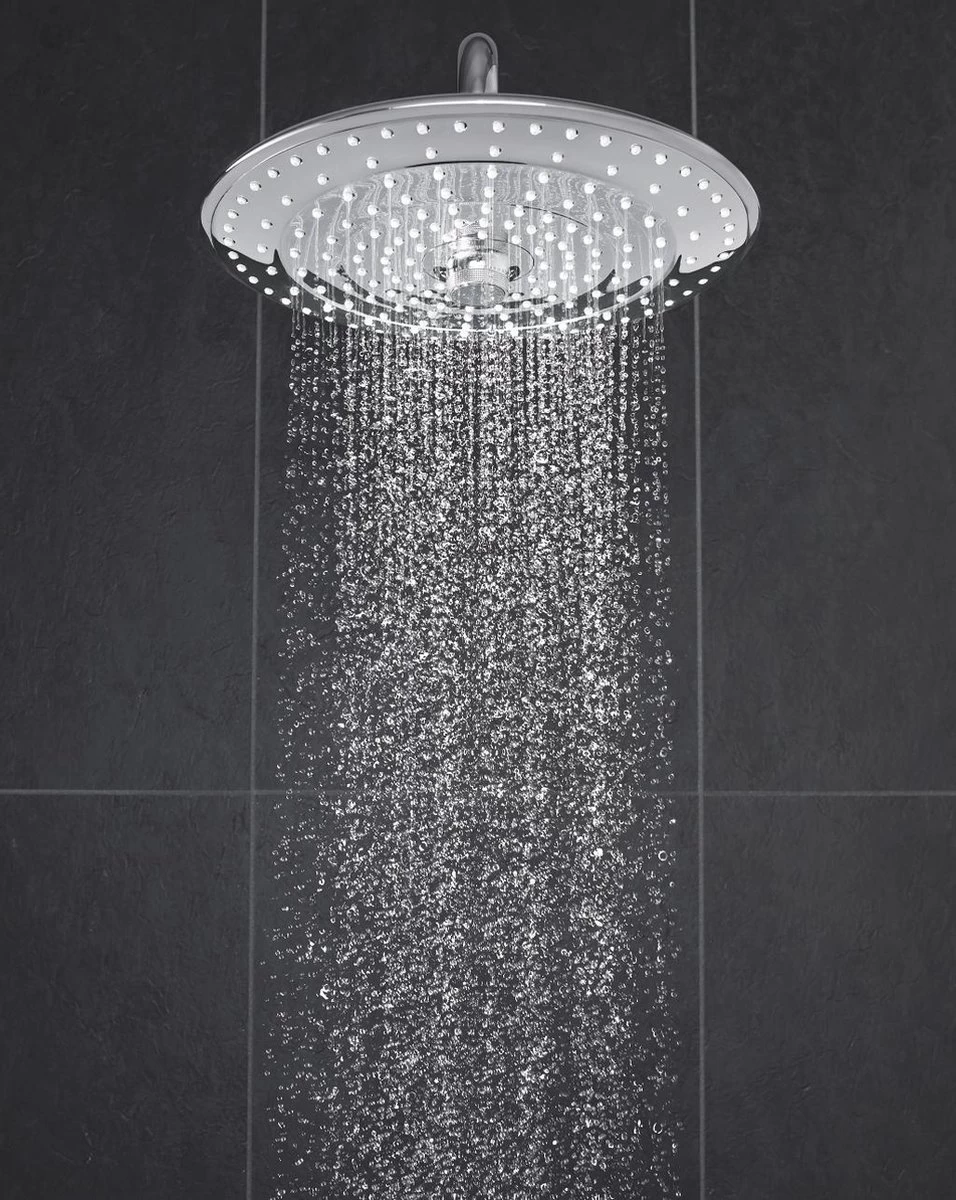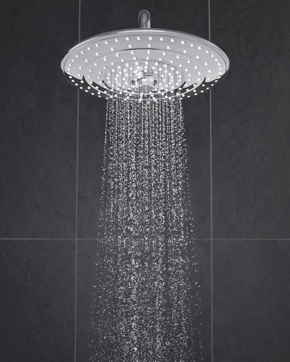Met de GROHE Euphoria 260 regendouche met thermostaatkraan voeg je design en genot toe aan je badkamer. De 260mm hoofddouche beschikt over drie verschillende stralen. De Jet straal is krachtig en geconcentreerd waardoor hij perfect is om je haar uit te spoelen en voor een stimulerende hoofd- of nekmassage. SmartRain is een bredere straal en zorgt voor een stimulerende, maar tegelijkertijd ontspannende ervaring. De Rain straal maakt gebruik van alle sproeigaatjes van de royale douchekop voor een verzachtende douche waarbij je lichaam volledig wordt ondergedompeld met water.