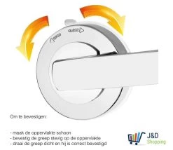 Met een maximale trekgewicht van 8kg is deze stijlvolle grip te gebruiken in de badkamer of als extra greep voor een koelkast of tuindeur bijvoorbeeld. Zo heb je altijd een hulpstuk bij de hand om overeind te komen in bad of om uit de douche te stappen. Ook zeer handig te bevestigen op bijvoorbeeld een schuifdeur, raam of een koelkast. Dit handvat is direct klaar voor gebruik. Vastzetten op elk gewenste plek in de badkamer door behulp van de zuignap functie. Door het strakke zilveren design vallen de zuignappen nauwelijks op. Belangrijk is wel om het handvat correct te installeren. Altijd even testen of de grip goed bevestigd is. Het is een eenvoudige installatie om de grip te bevestigen, er hoeft niet geboord te worden. Plaats de grip tegen een plat en schoon oppervlak. Eenmaal draaien aan beide kanten als aangegeven, hierdoor worden de zuignappen geactiveerd en is de grip correct bevestigd. De zuignappen zijn extra groot om bij een abrupte ruk de muur vast te blijven houden. Voor lang en optimaal gebruik. Gedurende de dagen de zuigfunctie opnieuw te activeren.