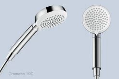 Met de handdouche Crometta 100 Vario van hansgrohe wordt de dagelijkse douche een genoegen. Het moderne design met het glanzende chroomoppervlak en de witte straalplaat zorgen voor een fascinerend contrast. Maar ook de binnenkant overtuigt: de douchekop met een diameter van 10 cm verwent met vier op elkaar afgestemde straalsoorten: De weldadige Rain-straal zorgt voor een verfrissende start van de dag. De Shampoo-straal is ideaal om haren uit te spoelen. Met de pulserende massagestraal komen vastzittende spieren zich los en de normale straal heeft veelzijdige toepassingen. wisselen van straalsoort kan eenvoudig door de gemakkelijk bewegende straalplaat te verdraaien.