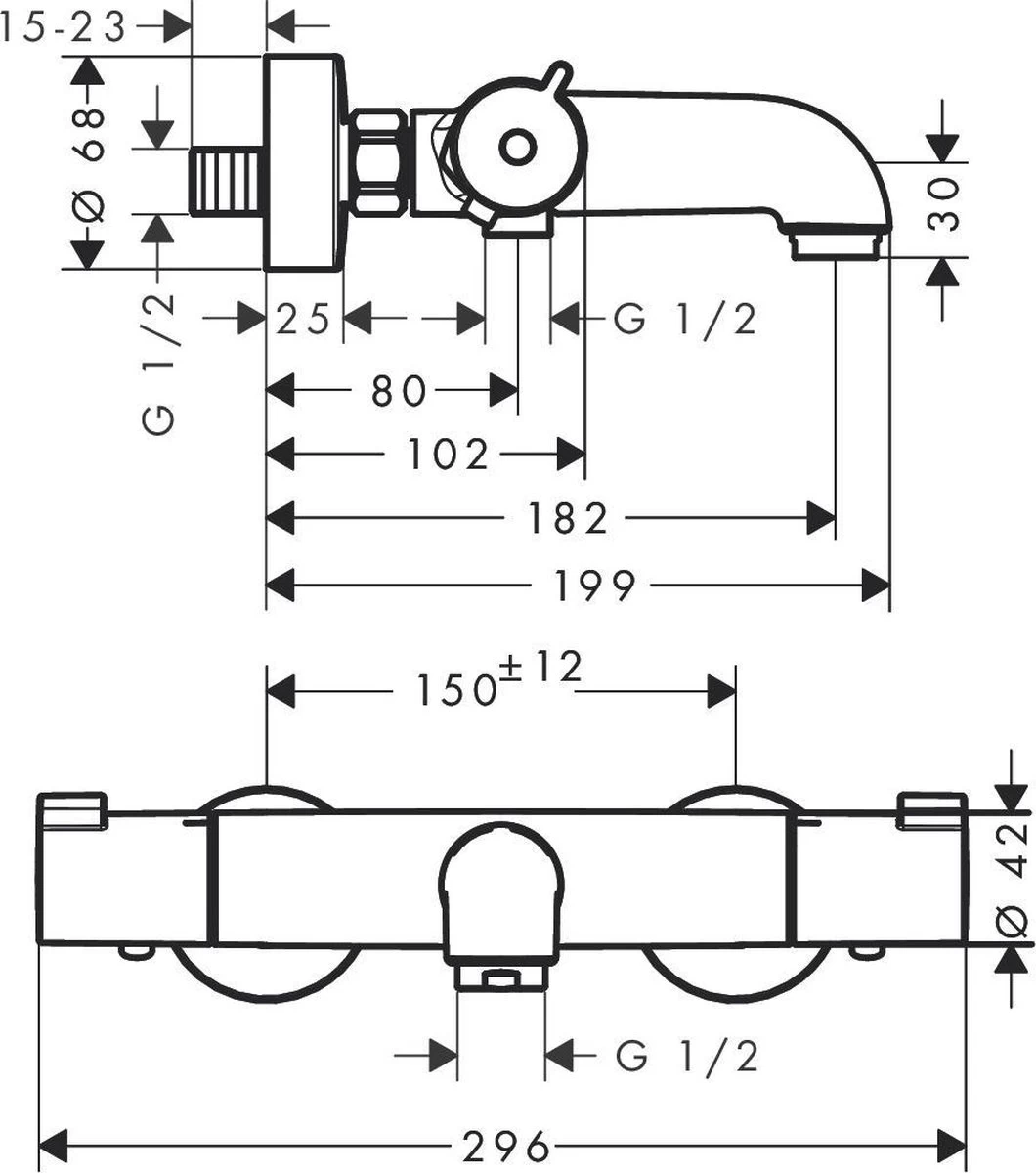 De thermostaat voor het bad wordt met meegeleverde S-aansluitingen aan een bestaande wateraanvoer geschroefd 150 mm, +/-12 mm). Daardoor is deze thermostaat heel geschikt voor het moderniseren van de badkamer, want de muur hoeft niet te worden opengebroken. De doucheslang wordt daarna met de standaardaansluiting op de thermostaat aangesloten. Klaar.
