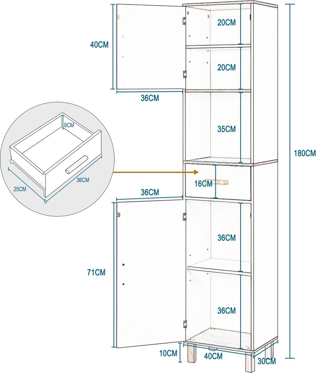 Het meubel biedt opbergruimte voor zowel tandenborstels, handdoeken en andere badkamer benodigdheden. De lade en opbergkast zorgen ervoor dat eender welk formaat van badkamerbenodigdheden opgeborgen kunnen worden.