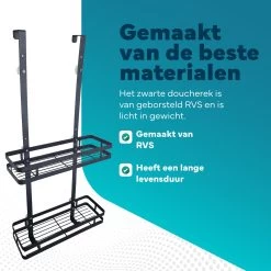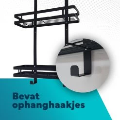 Het hangende opbergrek is eenvoudig in elkaar te zetten. Daarbij kan het worden opgehangen zonder te boren. De zuignappen op de achterkant zorgen voor stabiliteit en dat de douchewand niet beschadigd.