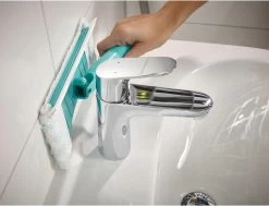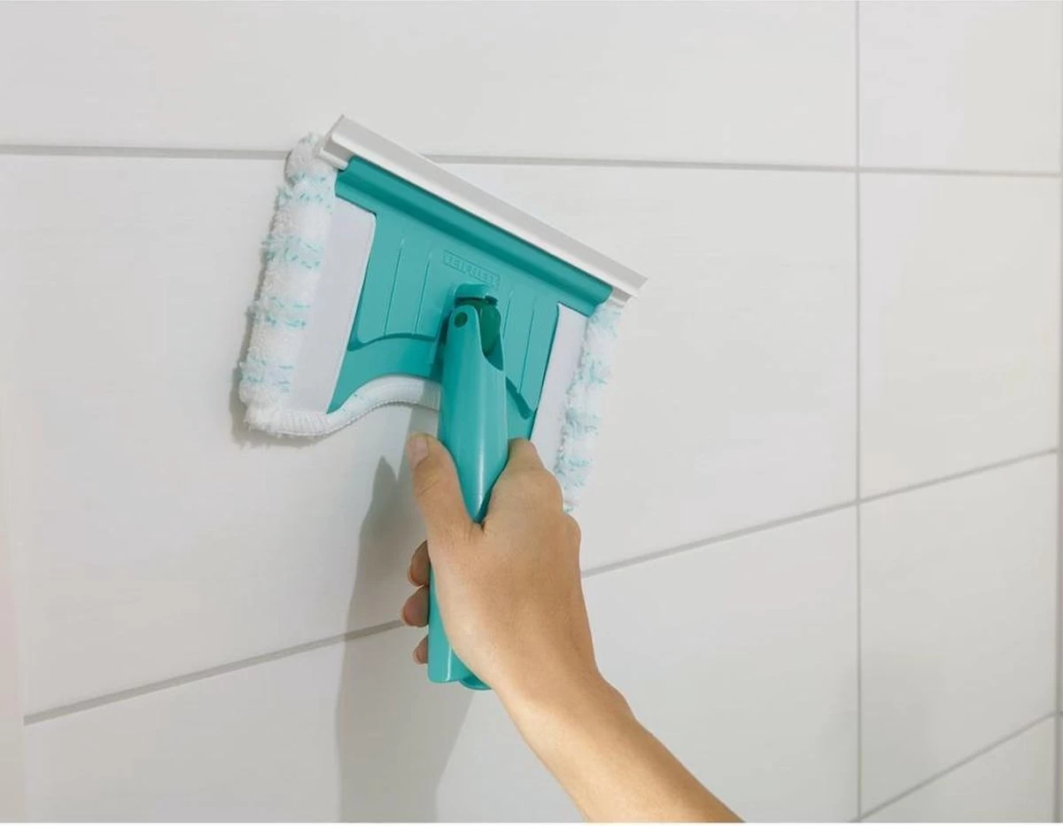 De tegel- en badkamermop Flexipad maakt het poetsen van de badkamer enorm eenvoudig. Dankzij zijn beweeglijkheid en de grote reikwijdte komt de Flexipad tot in de achterste hoeken – zonder dat u met een pijnlijke rug over de badkuip of in de douche hoeft te buigen. Door de ronde uitsparing past het mopvlak van de Flexipad precies in de vorm van armaturen en verwijdert met een paar bewegingen vieze vuilranden. Door zijn 360°-scharnier is hij daarbij zeer wendbaar. Hij komt moeiteloos onder elke badrand, kan goed om armaturen worden geleid en reinigt zorgvuldig elke hoek. Op lastig toegankelijke plaatsen kan de telescoopsteel worden gebruikt, die kan worden uitgetrokken tot een werklengte van 75 tot 120 cm. Na de vochtige reiniging wordt de Flexipad eenvoudigweg omgedraaid en vervolgens wordt er met de treklip een prachtige glans op de tegels en douchecabine aangebracht. De doek van de tegel- en badkamermop Flexipad bestaat uit de bewezen Leifheit-microvezel duo. Rijen met de fijnste, licht verhoogde borstelharen reiken tot in de dieperliggende voegen en verwijderen ook hardnekkig vuil, zoals kalk en zeepresten zonder enige krachtinspanning. De mopbreedte bedraagt 20 cm. Leifheit biedt 3 jaar garantie.