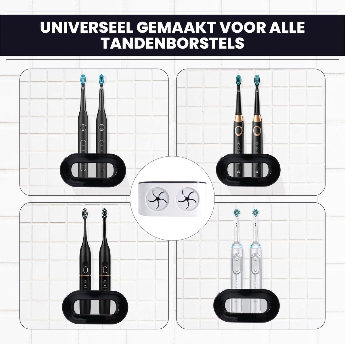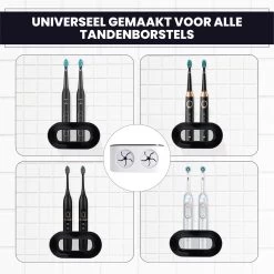 De tandenborstelhouder is geschikt voor twee elektrische tandenborstels. Door de siliconen ringen aan de bovenzijde zitten de tandenborstels goed vast. Zo kun je bijvoorbeeld je Oral-B tandenborstel makkelijk vast zetten. De siliconen ringen zorgen er ook voor dat er geen viezigheid achterblijft in de tandenborstelhouder.