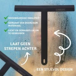 De zwart Livelyy wisser werkt geweldig. Hiermee maak je jouw badkamer glimmend schoon en strak in een handomdraai en heb je geen stress aan het einde van je dag. Deze douchewisser is een badkammeraccessoire waarmee je bovendien voorkomt dat er nare kalkaanslag en schimmel onstaat in je douche. Een praktische en