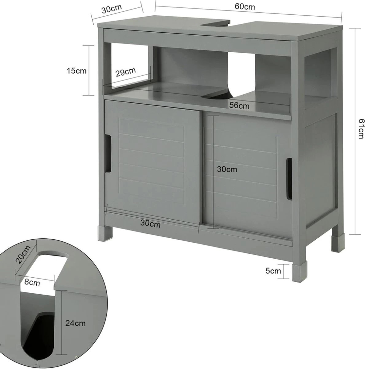 Afmetingen: 60 x 30 x 61 cm (L x B x H)