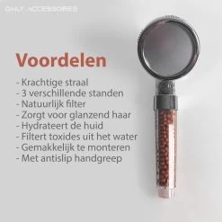 Deze douchekop is goed voor het milieu en tegelijkertijd goed voor de huid. Deze douchekop is waterbesparend en door de mineraalsteentjes worden alle slechte stoffen uit het water gefilterd. Daarnaast biedt de douchekop 3 verschillende straalsoorten om de ervaring compleet te maken. Ook is deze douchekop makkelijk op uw doucheslang aan te sluiten. U kunt hem er zo op draaien.