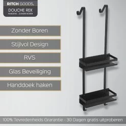 Organiseer alle douchespullen op één plek. Het ruime zwarte doucherek maakt jouw douche weer netjes.
