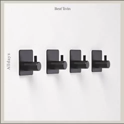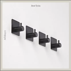 Deze zwarte handdoekhaakjes zijn zelfklevend en plak je eenvoudig met de plakstrip op de muur van je badkamer, toilet of keuken. De vierkante haakjes zijn stijlvol ontworpen en verkrijgbaar in de kleuren: zilver, zwart & goud. De handdoekhaakjes zijn gemaakt van kwalitatief rvs, dus ook in vochtige ruimtes gaan ze jarenlang mee.