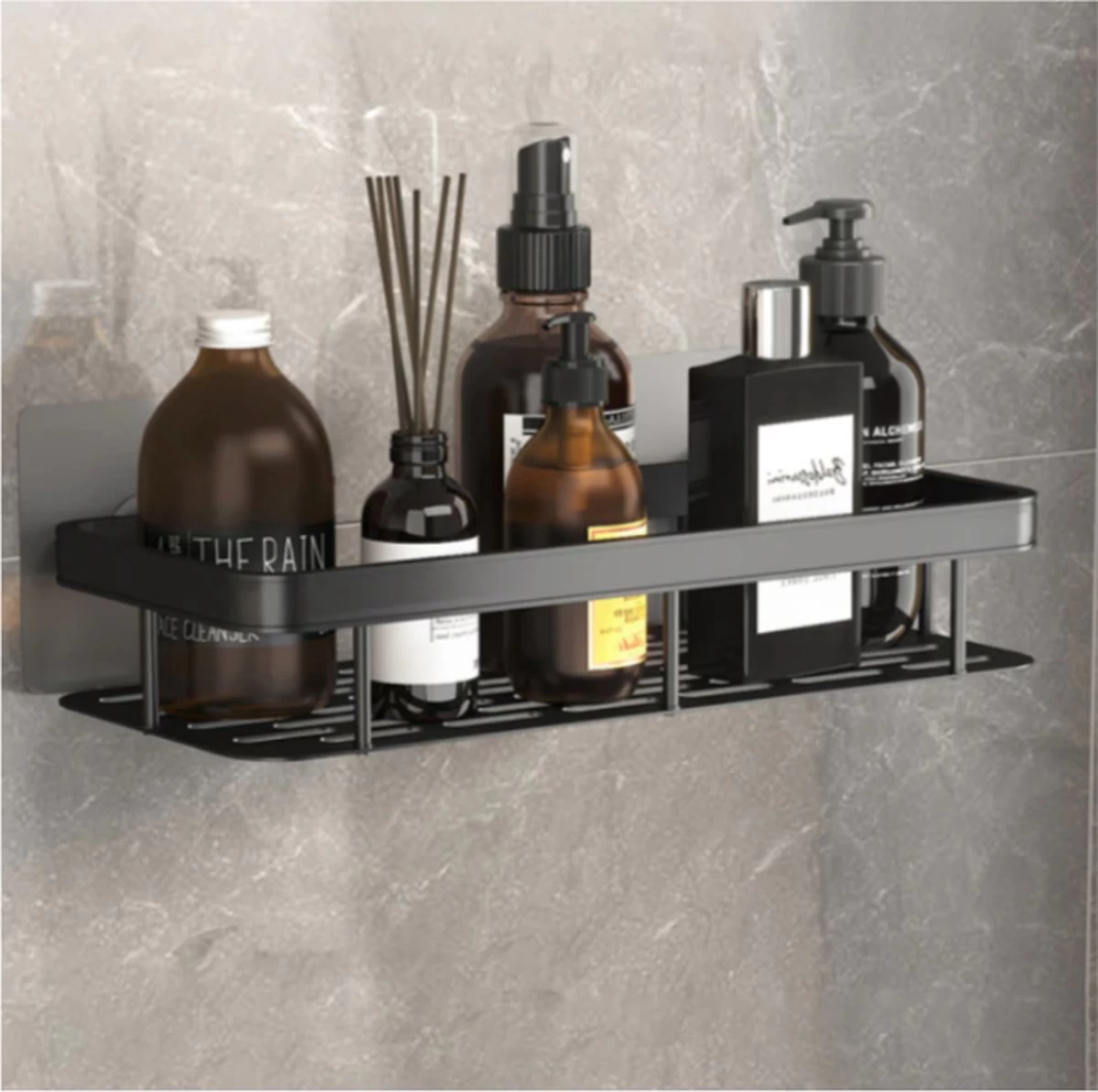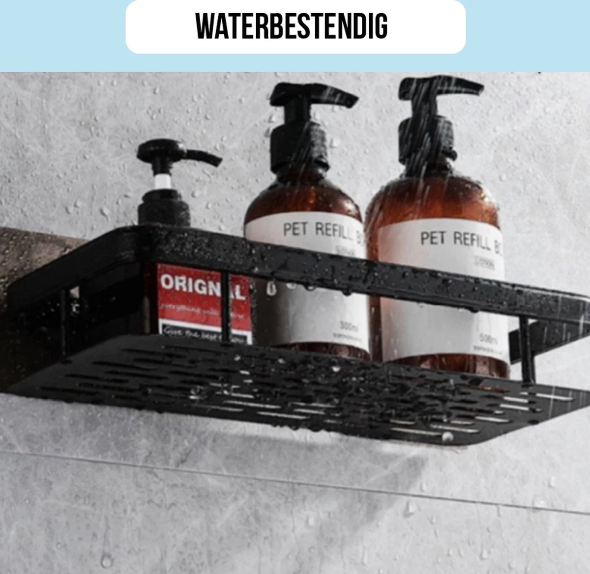 Het doucherekje is zwart van kleur en bestaat uit kunststof. Het rekje zal dus in veel badkamers mooi staan. Ook zitten er gaatjes in het wandrekje waardoor hij niet vol zal lopen met water.