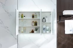 Maak uw badkamer compleet met deze gave spiegelkast. De spiegelkast heeft voldoende opbergruimte en is voorzien van ingebouwde led verlichting in de spiegel. De ledverlichting is eenvoudig te bedienen via een ingebouwde knop in de spiegel. Verder is de spiegelkast eenvoudig te installeren. Met deze spiegelkast maakt u uw badkamer helemaal compleet! Gratis verzending.