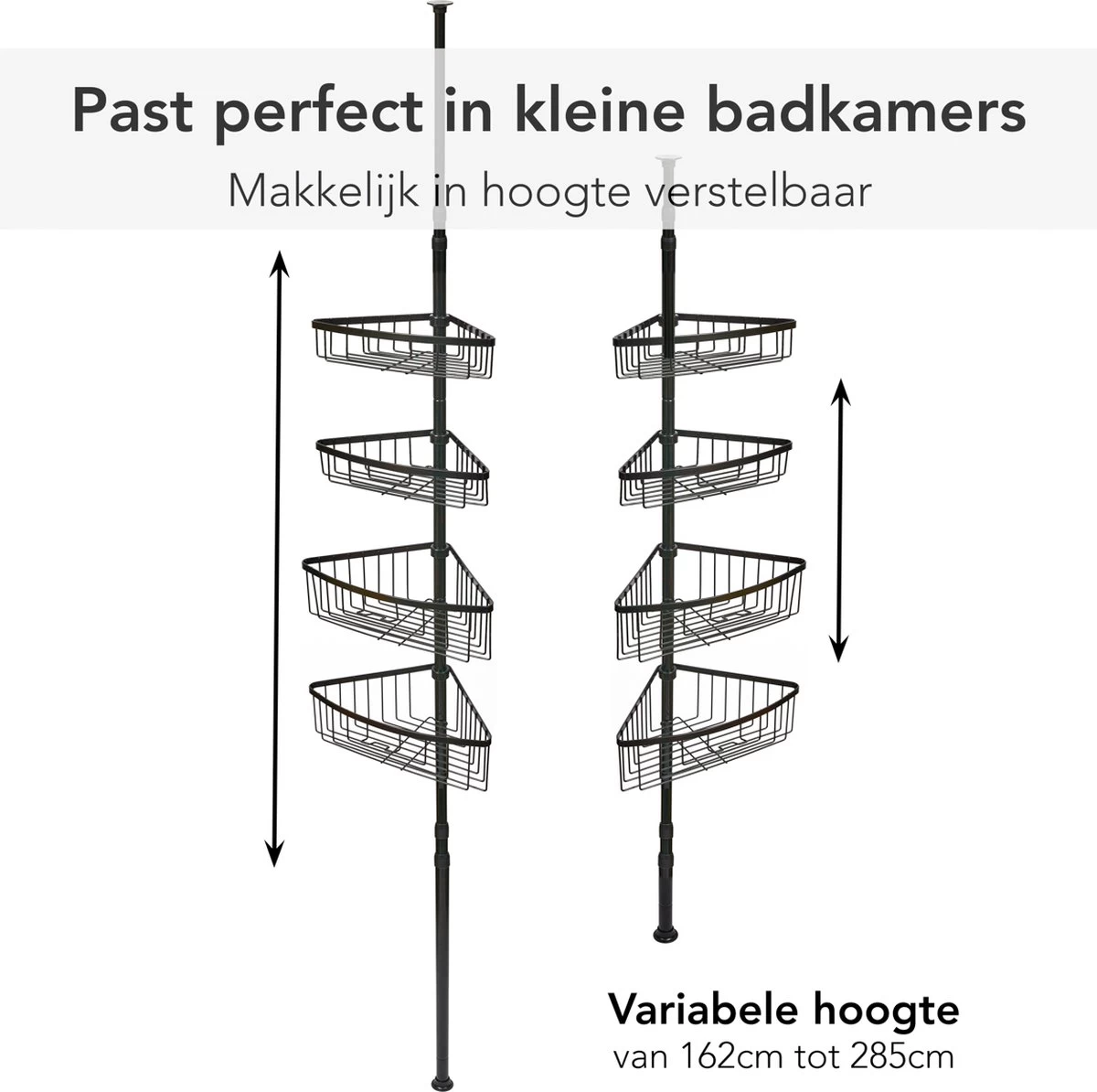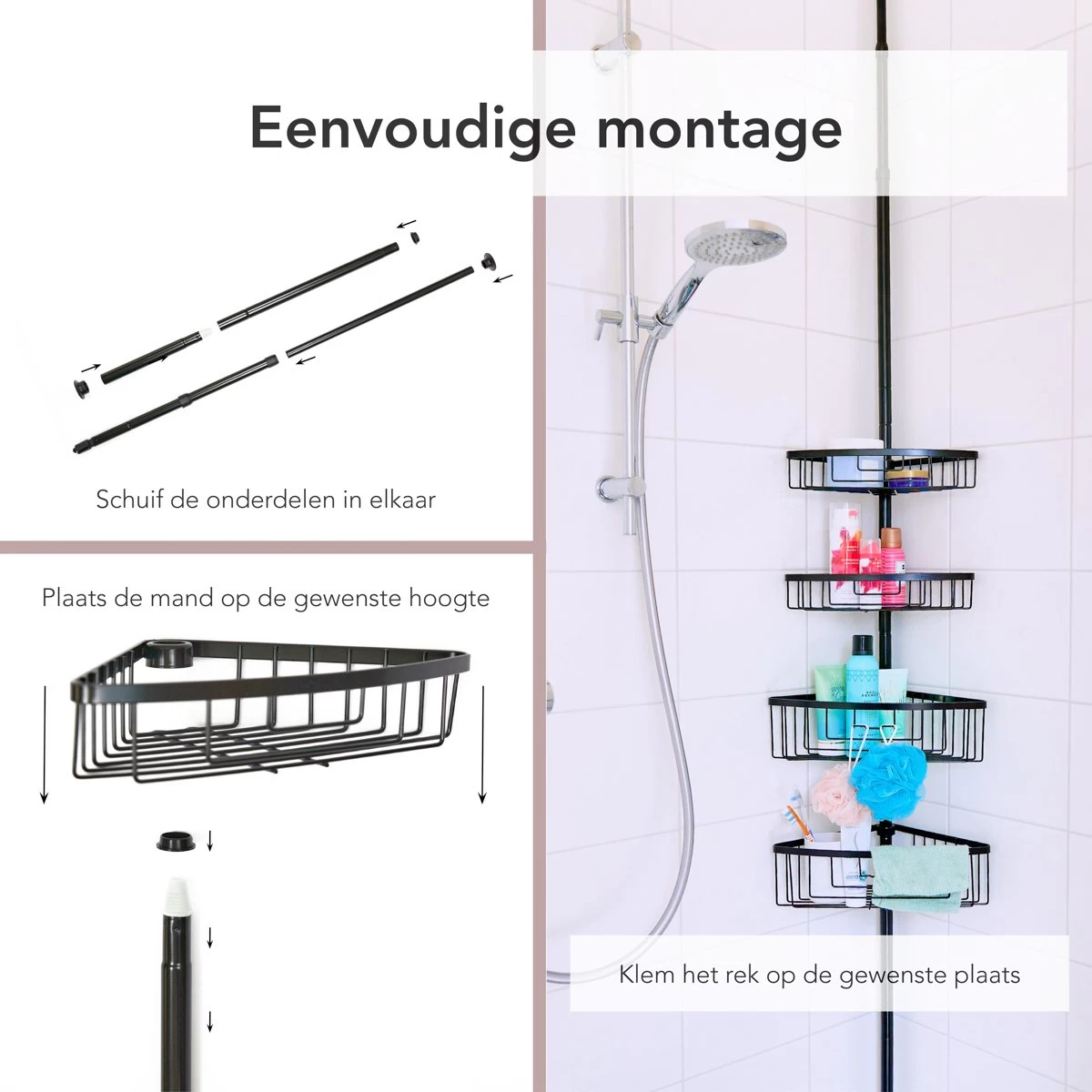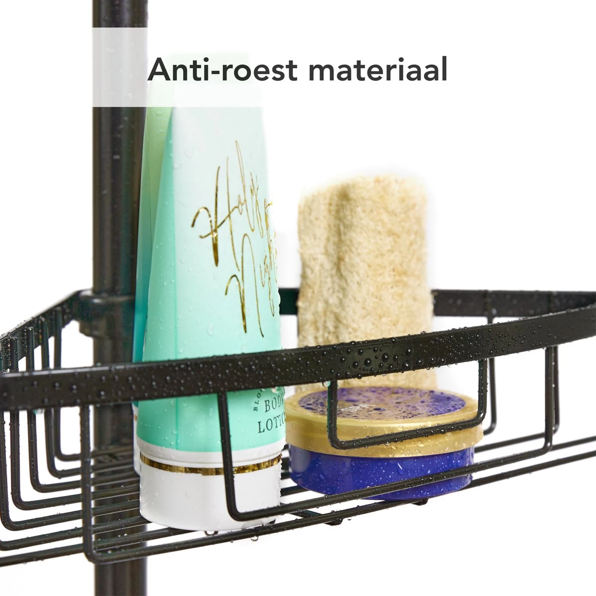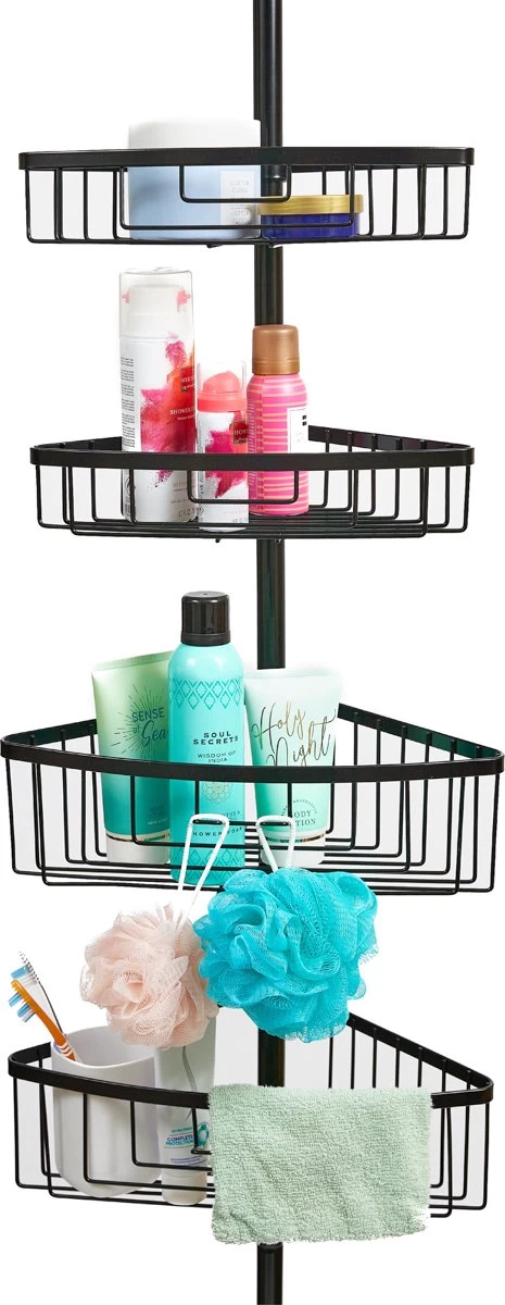 Ook last van een rommelige badkamer? Met het telescopische doucherek houd je al je benodigde douche-producten binnen handbereik en goed georganiseerd.