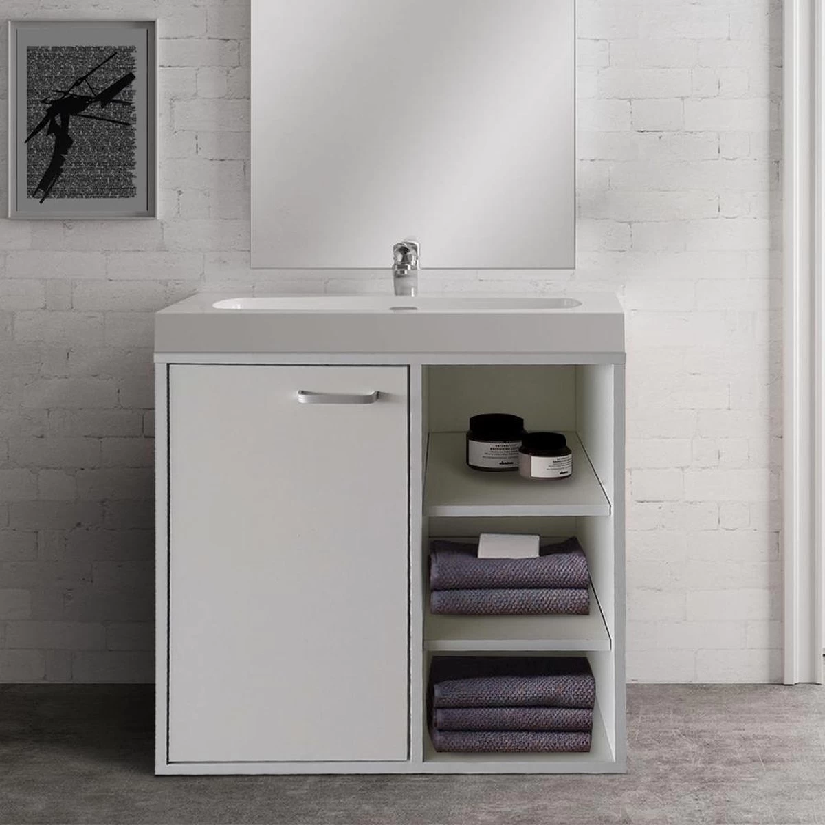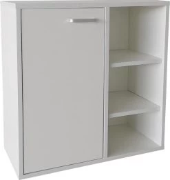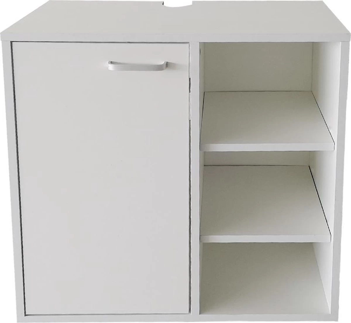 Deze onderkast voor onder de wastafel is ideaal voor elke badkamer. Het meubel is ruimtebesparend en biedt voldoende opbergmogelijkeden zodat uw badkamer ordelijk blijft. Links een openslaande deur met een grote open opbergruimte en rechts 3 afzonderlijke opbergvakken. Het melamine oppervlak zorgt ervoor dat dit badkamermeubel zeer eenvoudig kan worden gereinigd en minder gevoelig is voor vocht. Let op levering exclusief wasbak, de kraan en spiegel en de hoogte is 60 cm. Indien de wastafel hoger aan de muur is gemonteerd dan kan er een open ruimte tussen de wastafel en de onderbouwkast ontstaan.Kleur: wit. Afmetingen: hoog 60 cm breed 60 cm diep 30 cm. Levering is inclusief handleiding en benodigde montagematerialen.
