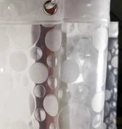 Mooi Douchegordijn van Papillon in dik plastic-uitvoering. Met 3 dimensionale ballen als motief. Wasbaar op 30°C. Inclusief 12 kunstof ophangringen. Makkelijk schoon te houden en geheel water dicht. Past aan iedere douchegordijn stang.