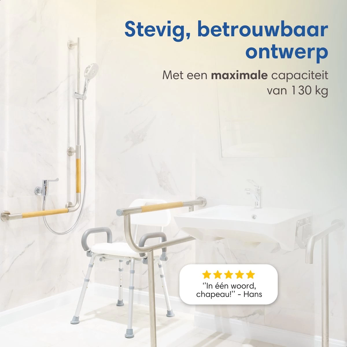 Je hebt geen gereedschap nodig om deze douchekruk te monteren. Easy-grip schroeven en een stap-voor-stap handleiding zorgen ervoor dat de stoel in een mum van tijd klaar is. Het maximale gewicht is 130 KG.