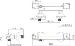 - • De chromen douchethermostaat is voorzien van twee grepen waarmee je de temperatuur en het watervolume regelt.