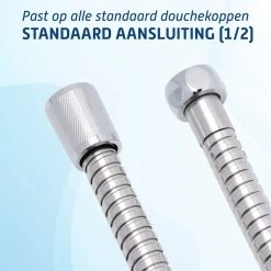 De Saqu doucheslang past op vrijwel alle douchekoppen vanwege de universele aansluiting. De universele doucheslang is uitgevoerd in glanzend chroom en 175 cm lang. Deze lengte is ideaal om te combineren met een doucheset. Vergeet niet om er een bijpassende handdouche bij te bestellen!