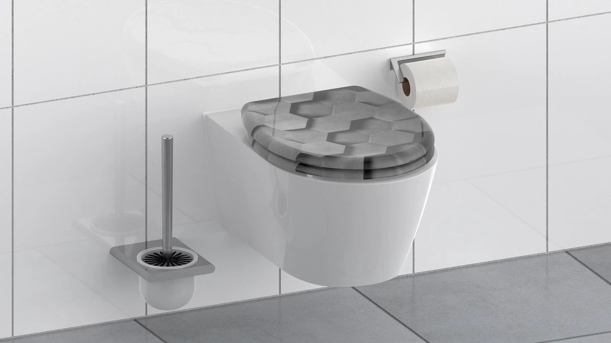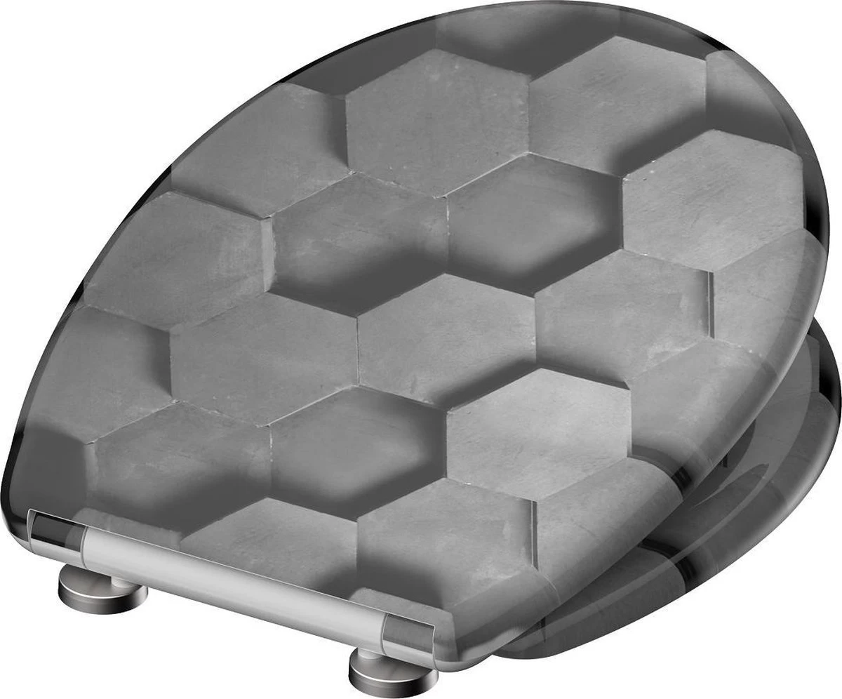 Duroplast WC-bril GREY HEXAGONS met soft-close en quick-release