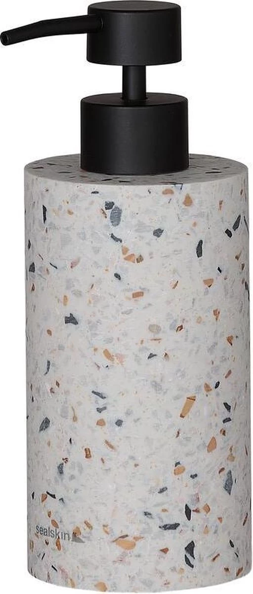De kleurrijke spikkels zijn al jaren een trend in het interieur. Vrolijk ook jouw badkamer op met deze zeepdispenser met terrazzomotief van Sealskin Blend. Helemaal trendy.