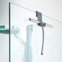 Houd het glas van je douchecabine mooi kalk- en streepvrij. Verwijder na elke douchebeurt even het water van het glas met de functionele en decoratieve raamwisser Deluxe van Sealskin. De RVS gepolijste greep is voorzien van een antraciet siliconen dop, zodat het glas en het vloeroppervlak bij een mogelijke val beschermd blijven. Door het flexibele siliconen materiaal van de glashaak is deze geschikt voor zowel 6 mm als 8 mm glas.