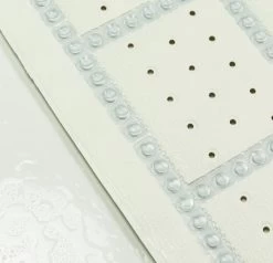 Met de Sealskin Unilux antislipmat zorg je voor extra veiligheid in jouw badkamer. Deze vierkante antislipmat is aan de onderzijde uitgerust met zuignappen zodat je deze stevig kunt bevestigen in je douche om uitglijden te voorkomen. Het water kan gemakkelijk weglopen door de gaatjes in de mat. De antislipmat is uitgevoerd in de kleur wit en dankzij zijn formaat van 55×55 cm is hij uitermate geschikt voor in je douchecabine. De mat kan eenvoudig met de hand gereinigd worden maar mag zelfs op een 30 graden fijnwasprogramma in je wasmachine.